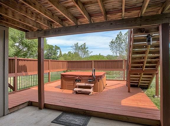 The moment you walk into this beautifully maintained Ranch home in Fountain Hills, you'll feel at home! Natural light fills the entryway and living room from the floor to ceiling windows on each side of the fireplace. The kitchen boasts lovely hardwood floors, Corian countertops, tiled backsplash, stainless steel appliances and a walk in pantry. From the kitchen, step out onto the large, partially covered deck, perfect for bbq's or relaxing with friends. Three bedrooms on the main floor, including the primary bedroom, make for true Ranch-style living. The Master Bedroom features tiered ceiling, crown moulding, ceiling fan and a private entrance to the home's spacious deck. Down the steps, leads you to the hot tub with privacy fencing surrounding it. Master Bathroom is full of light, along with dual vanity, jetted tub, separate walk in shower and spacious walk in closet. Finished basement provides an additional bedroom and full bath, ideal for overnight guests. In addition, you've got plenty of room to host friends over for the big game and serve up drinks and snacks at the well appointed wet bar! Workshop with built-ins! Basement walks out to covered patio, hot tub and HUGE yard that backs to green-space! Don't miss your chance to make this house your "home".