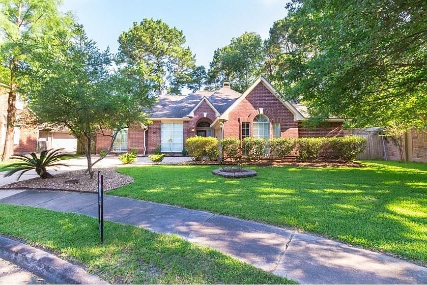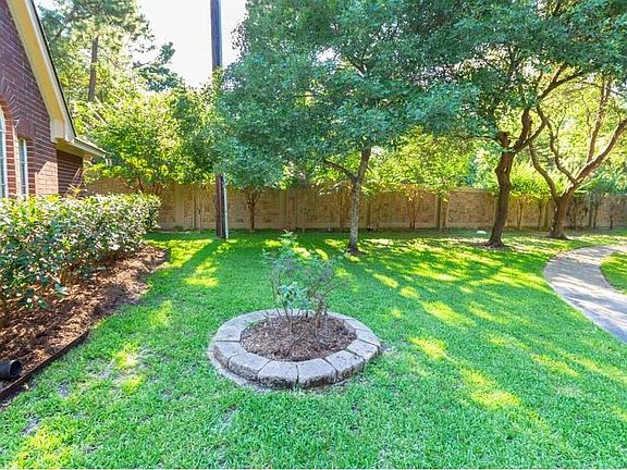David Weekley home is nestled among the trees at the end of the cul-de-sac with a stone fence on the right side of the property line. Grand entry with hardwood flooring opens up to huge family room with see through fireplace into breakfast. Huge formal dining room with 11 foot ceiling height, elegant ceiling details, chair rail, double crown molding and hardwood flooring. The kitchen has recently had kitchen cabinets painted white and has granite countertops opens to breakfast and small living room area. Great floor plan layout out, French doors from master bedroom to exterior, fountain in backyard patio. Roof approximately 4 1/2 years old, hot water heater replaced in Dec 2015.