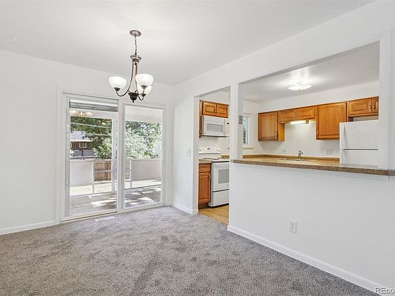 Deep wood colors welcome you inside this spacious and open bi-level. Note the rich color of the attractive wood kitchen cabinets, along with the new stove, new dishwasher, and the breakfast bar area. The window overlooks the back yard and there is a serving window to the dining area off the kitchen. Patio doors will take you to the deck and down the stairs to the fenced backyard. Notice the sharp ‘between-the-glass blinds’ that protect the blinds from dust and damage. Six panel doors, new carpet, new paint, and newer vinyl double pane windows enhance the living areas. The hallway to bedrooms has a double door closet. Bedrooms are good-sized, bright and with large closets. Down to the lower level are two more good-sized bedrooms, a full bathroom and large family room with wood burning fireplace. Off the family room is the utility room and laundry room and a door to the garage and back yard. The garage has a large storage area and two work benches. This home is located close to beautiful Addenbrooke Park with its walking paths, lake and picnic tables, and Belmar Park with the amphitheater and heritage museum. Shop conveniently at the Belmar City Center with its variety of shopping and restaurants!