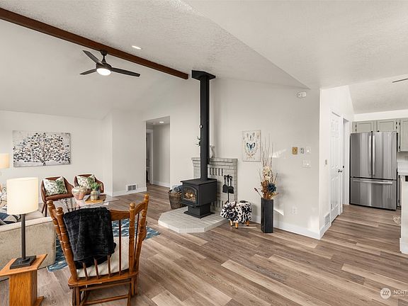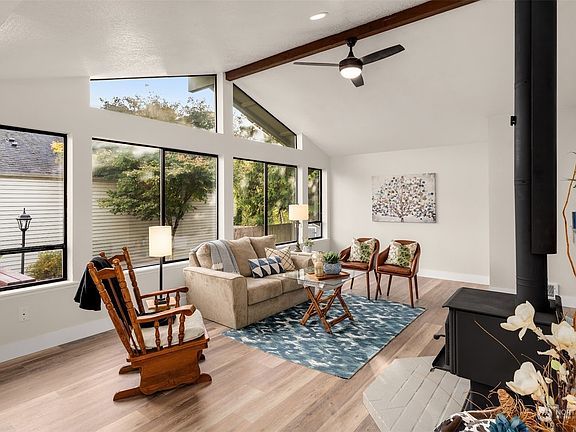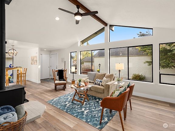 Welcome Home for the Holidays! Ring in the new year in this completely updated 2 bed/1.75 bath rambler in Sunridge. Vaulted ceilings, clerestory windows and wood burning stove provide a bright yet cozy vibe. New: LVP floors and trim, quartz counters, sinks and faucets (kitchen and baths), stainless appliances, lighting. Freshly painted inside and out. Oversized 2 car garage with overhead storage. Yes – it’s a ramble, but a BONUS basement – backyard exterior entrance leads to the ~ 25’ x 19’ roughed-in space with water, heat & electric – make an ADU, or use as a shop, storage, exercise, crafts – you decide. Fully fenced, private yard backs up to green space. Close to Boeing/Paine Field, I-5, shopping, restaurants, parks. Mukilteo Schools.