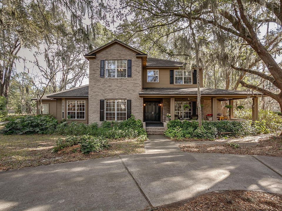 A true ''HIDDEN TREASURE''. Great Location! ACTUAL ADDRESS IS ''4522 OLD SPANISH TRAIL''. Gorgeous custom built brick home in a beautiful nature setting on over an 1 acre. Wrap around porch. This home is in a private setting, yet so convenient. Home Theater with 108" screen, projector, and 8 chairs convey(approx. $40,000 value). PLUS all stainless appliances and the washer and dryer. Many custom features and built ins. Extra room upstairs can be used for playroom, 2nd office, art, sewing or music. Sq. ft. does not include the 720 sq. ft. detached 2 car garage/workshop with full bath. This can be used as guest suite. Lots of extra storage. This home is a MUST SEE!