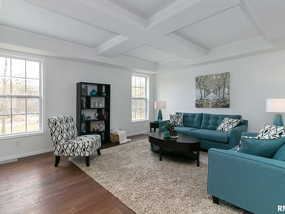 New construction ranch home on 1 acre with possible additional .75 acres. Over 3800 sq ft of living space plus garage space to hold 16 cars! Home has many upgrades including ZERO entry from front door & garage. Beautiful eat-in kitchen features ample white cabinetry accented by quartz counters & island with glass fronts. Main level laundry has same cabinetry & quartz counters. French doors with interior blinds lead to the large deck overlooking the private park w/soccer, volleyball & ice skating. Great room features coffered ceilings & crown molding. Master suite features walk in closet, quartz counter tops, double vanity, soaking tub, walk-in shower & commode closet. All 3 main floor bedrooms overlook the neighboring pond. Finished walk-out basement gives you an enormous rec space with plumbing ready to install bar area or kitchenette. The garage is an over/under design with pre-cast concrete floor & room for 8 cars in each...lower level garage could be additional living space
