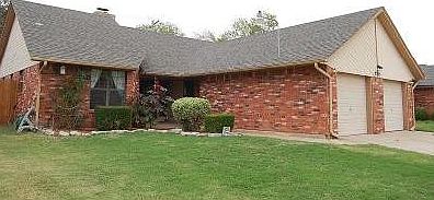 9225 Apple Dr - Midwest City ** Carl Albert schools ** Only 5 mins to Tinker AFB ** YOU MUST SEE THIS HOME *****MLS #472204 ***** There is 100% financing avail (wac), close & move in for aprx $500.00, bond money avail and Midwest City Community action.call Roberta 405-642-0479****Has 3 bed - 2 fireplaces - 2 living areas- 2 full baths,- 2 car attached garage*** master bathrm has a jetted tub -cultured marble countertops-ceramic tile floor-walkin closet in bedrm-skylite & nice fireplace******* large open airy home with 2 working gas fireplaces with gas logs *** Master bedrm has fireplace as does the living room (both are gas logs ) ** Master features tray ceiling with ceiling fan, whirlpool jetted tub - solid surface counters-ceramic tile floor*** One side of garage has been converted to 2nd living area-can EASILY be convtered back- has heat & air also.***** kitchen has large eating area - builtin microwave-stove- many many cabinets- breakfast bar- ceramic tile floor *** Seller has put in new heat & air 2007 ** New roof 2008 *** great landscaping in front and new wood fence in backyard 2010 ****Home has alarm system ** and thermo pane double insulated tilt-in windows thru-out the home. MLS # 472204 *** all info to be verified *** Call Roberta anytime at 405-642-0479 **** toll free - 800-259-0202 ext. 238 **** email- robertas1@aol.com **** web- robertasellsokla.com ****