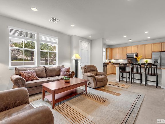 What a View in the prestigious gated "VUE" at Somersett. This home is in a serene setting nestled among the trees & common area. Pride of ownership shows with this one- owner. This is resort style living at it's finest. This duet home has an open floor, & is bright and airy, with 3 large bedrooms, 2 1/2 baths, a a spacious loft. Minutes from the town community center with amenities galore...clubhouse, with a pool, spa/hot tub, gym, tennis courts, golf, bar, restaurant. Miles of walking & bike trails., Location, location location.... Reno Tahoe International airport is just minutes away.......Close to Truckee & Lake Tahoe. AGENTS SEE PRIVATE REMARKS