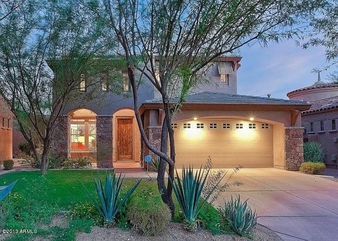 Luxury home located in CUL-DE-SAC of DC Ranch gated community, enclaved w/ MOUNTAIN VIEWS. CLOSE TO 101, Market Street and famous golf courses TPC Scottsdale and GrayHawk. Walking distance to DC Ranch Crossing: AJ's, professional services & restaurants. Upgraded 4 bdrm, 3 bath, plus media/playroom, 2 level home has a first level guest suite (or At-home office), upstairs includes a large master suite w/ private WALK-OUT DECK w/ mountain views, a walk-in cedar closet, grand living space w/ soaring ceilings, gorgeous STONE FIREPLACE, HARD WOOD FLOOR & PLANTATION SHUTTERS. CHEF'S KITCHEN w/ granite counters, stainless steel appliances, double ovens, gas cook top, & extra large island opens to living area. 3 SPACES GARAGE. Enjoy the lifestyle of DC Ranch! - Access to PARKS and COMMUNITY activities and AMENITIES (Clubhouse, Lap Pool, Kids pool, Tennis Courts, Exercise room).