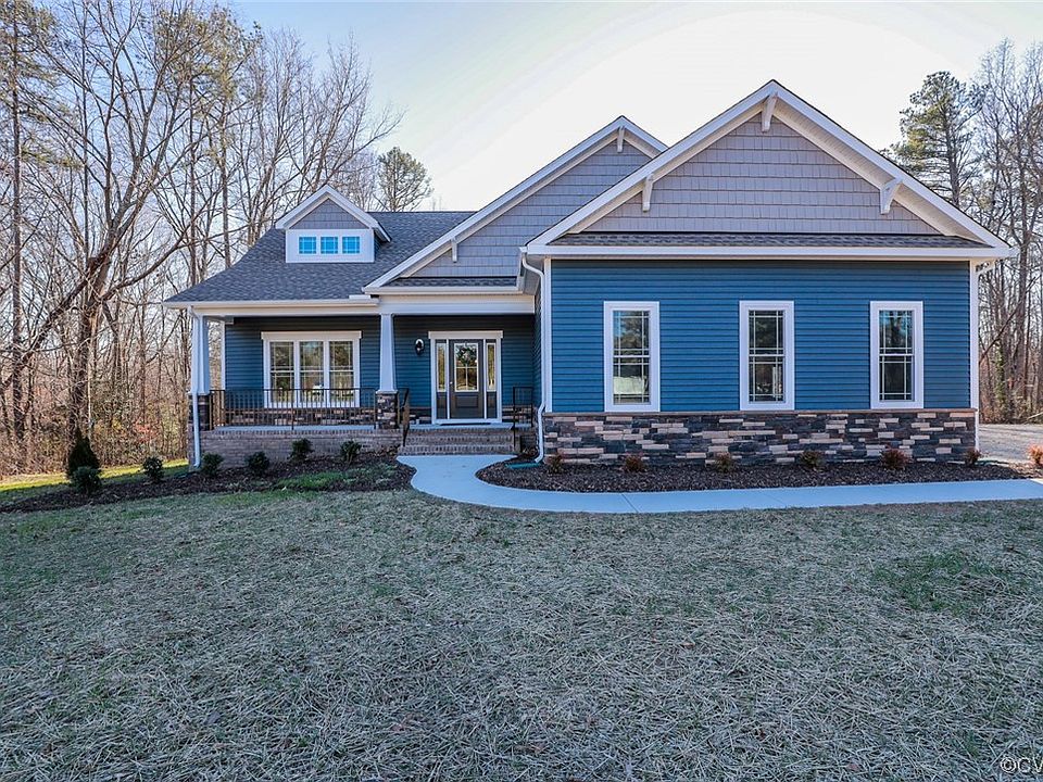 Beautiful Craftsman Style Cape home on over 4 acres in Hanover County. This is the Covington Plan by Emerald Custom Homes. Featuring family room with stone fireplace, Beautiful Chefs Kitchen with Island, white soft close cabinetry, electric cook top, double oven, SS Farm Sink, under cabinet lighting, backsplash and whirlpool appliances. First floor primary bedroom with custom walk-in closet, en suite bathroom with oversized tile shower and double vanity sink. On the Second floor you will find bedrooms 2 & 3 which are nice sized with access to full bathroom with subway tile shower. 4th bedroom with vaulted ceiling and direct access to hallway full bathroom. Other features include: Ceiling Fans, First floor laundry, 9 ft ceilings, LVP Flooring throughout main floor, Dual zoned Carrier Heat pumps, Extensive Crown moldings, Covered rear porch, 2 car side entry garage with opener included, Generator Hook up, Vinyl & Stone siding, Deep well / Conventional Septic, No HOA, Hanover High school district! Convenient location to the town of Ashland & Interstate 95 or RT 301. House is 100% completed and ready for occupancy.