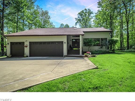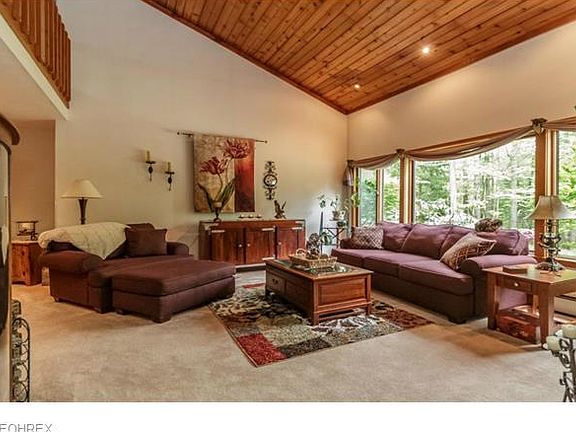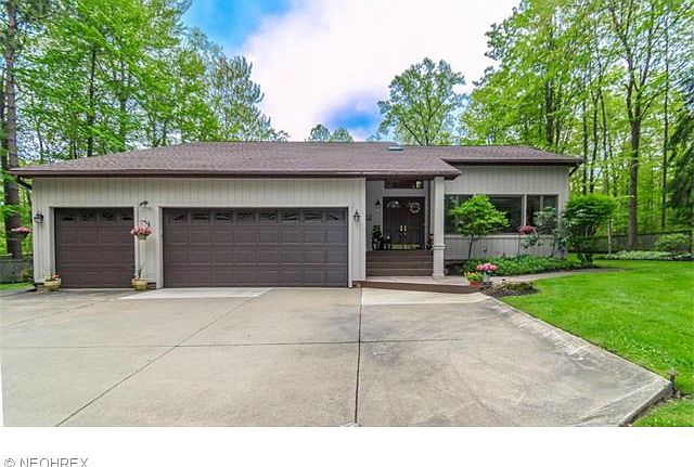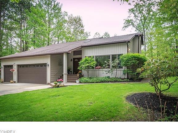 Very private wooded setting. Contemporary retreat on three wooded acres. Features family room with vaulted ceiling and stone fireplace. Vaulted cedar ceilings in living room/kitchen/foyer and loft. Updated kitchen, skylights, newer roof. Two tiered deck overlooking woods/ravine and creek off family room. First floor master suite. Finished basement. Paved drive, three car garage. Easy access to I-90.