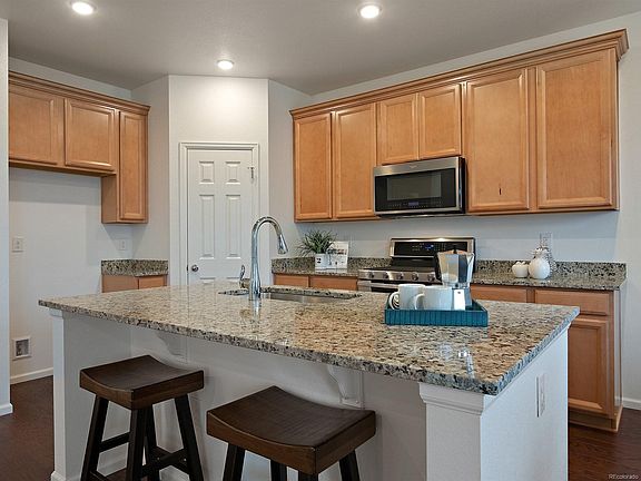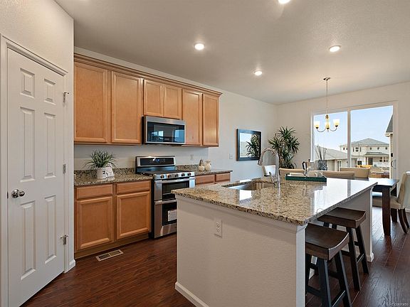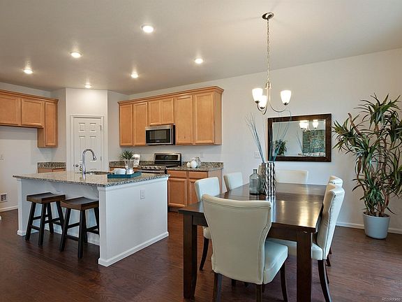 Brand NEW energy-efficient home ready NOW! This 2-story home is the perfect fit with two secondary bedrooms and a master suite featuring a large walk-in closet. The upper level laundry keeps life easy and convenient. Kitchen opens up into the dining and great rooms with space for any occasion. Honey cabinets, butterfly beige kitchen countertops, agate carpet, light beige colored laminate, and hazelnut hardwood flooring in The District D package. Centrally located Buffalo Highlands is a beautiful community in the bustling Commerce City. Surrounded by growth this community is just a short commute to Downtown Denver and DIA. Known for their energy-efficient features, our home help you live a healthier and quieter lifestyle while saving thousands on utility bills.