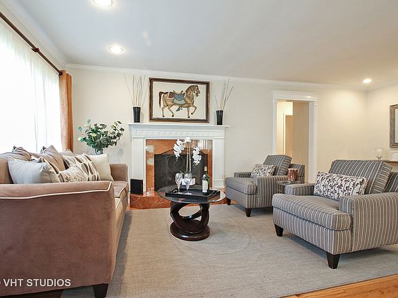 HUGE, terrific, updated home located on a lovely tree-lined street on a beautifully landscaped lot! 3 levels of fully finished & spacious living space. 1st floor offers an elegant living & dining room w/ gas fireplace, crown molding, & large picture windows. Bright, eat-in kitchen w/ new (2017) appliances, custom cabinetry, & skylight, plus room for sizeable table. Off the living room is a BR or additional den/office/family room, & 5th BR next to a full bath. Past the butler's pantry is a slate floor mudroom that leads to the attached heated garage w/ half bath. Upstairs has 3 lrg BRs, huge closets, & 2 full baths, including master suite w/ custom built-ins, walk-in closet, & stunning master bath w/ double sinks, Jacuzzi tub, walk-in shower, & vanity. Finished basement w/ a large rec rm & bonus bdrm/office, plus full bath, & laundry rm. Flood control system & newer carpeting. Dual zones. SO much storage. Backyard pergola perfect for entertaining! Close to schools, parks, transportation
