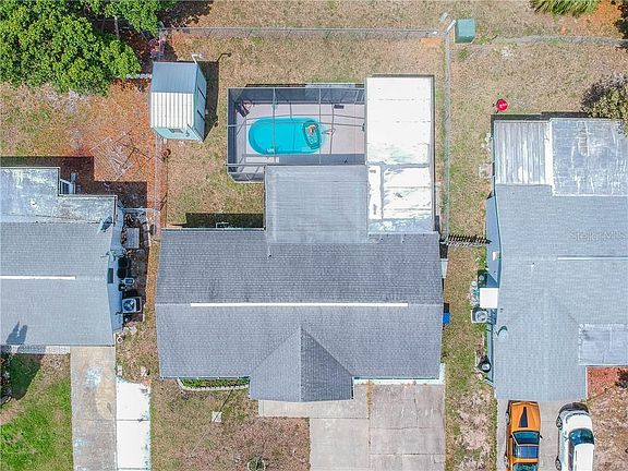 This home has a POOL!!!! Nicely updated and well maintained home featuring 2 Beds, 2 Baths, garage & screened in lanai w/pool! Open concept living space. 2 Beds & 1 updated bath on the left side of the home. Second bathroom includes shower, toilet & sink in garage. Home has a storage shed that stays. Fully fenced in yard Non Flood zone. Close to shopping and easy access to US19 Tenant occupied
