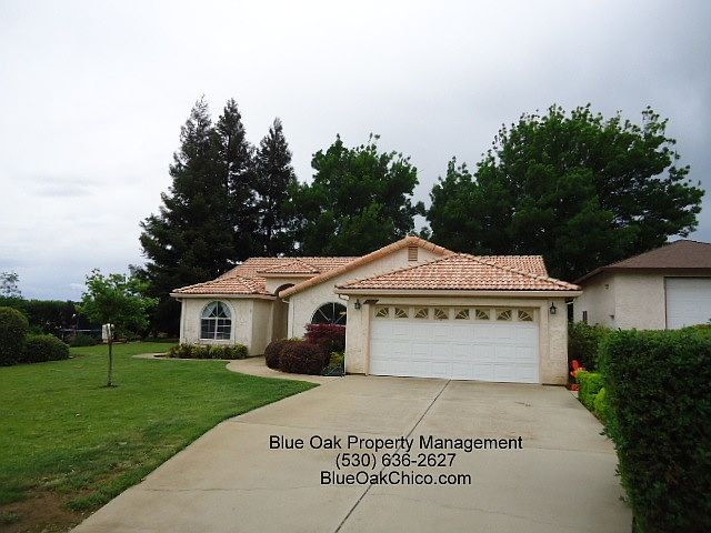 Blue Oak Property Management is offering for rent this 3 bedroom, 2 bathroom house in Durham, CA. Enjoy country living, this house is on .75 acres with large front yard lined with fruit trees, patio area, and large storage shed/shop with roll up door (great for RV parking and storing your toys). House has open floor plan with newer laminate wood flooring in main living area and carpet in the bedrooms. Master bedroom is on one side of the house and other bedrooms are on the other side of the house. Stay comfortable all year long with central heat and air, ceiling fans in every room, and whole house fan. House also has large bonus room in the back of the house with lots of windows and its own heating and air. It can be used as game room or kids play area. Master bedroom features walk in closet, on suite bathroom with dual vanity sinks, soaking tub, and walk in shower. House also includes wather softner hook ups and indoor laundry room with washer and dryer. Rent is $1795 per month and includes water, landscaping, and pest control. Security deposit is $1795. Pets considered with additional deposit (age and breed restrictions apply) Two pet maximum. One year lease term. Available in early to mid June.