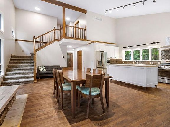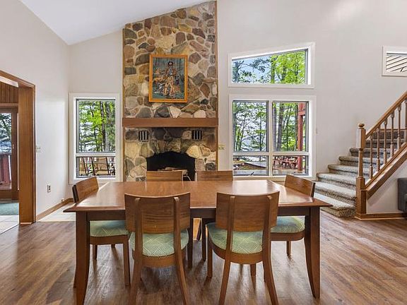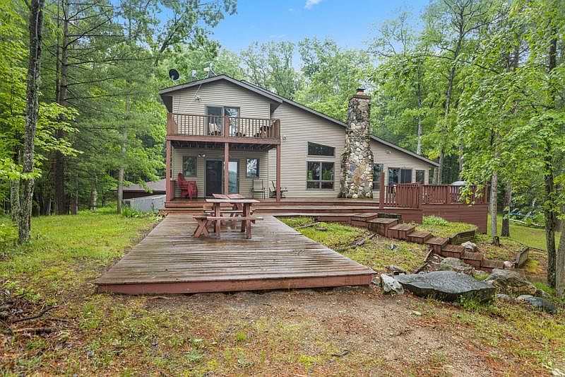 Fantastic waterfront home and property. A dreamy place on 10.4 acres of land with 453 feet of waterfront on Strawberry Lake in Osceola County. This 5 bed, 3 bath home has had very nice updates with floors, new kitchen, lower-level renovations and more. Two-story home with walk-out lower level. Beautiful stone fireplace in the main kitchen/living/dining area, laminate floors and more. Window views are panoramic in this contemporary style home. Large garage with separate heated recreation room. You will love the great peninsula setting and the awesome sandy water. This park-like setting gives a feeling of privacy and is protected from the road view. This could be your summer get-away place! Highly desired lake with great fishing. Call today for more info!