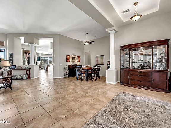 Well appointed single level Executive home located in Cibola Vista, Phase 2 featuring larger lots. As soon as you enter this exceptional home you will be drawn to the 'open concept' living spaces. Formal dining on the right, private Office to the left. Formal living room center stage is without obstructions to view the Breakfast Nook, Family Room, Kitchen. The amount of windows lends to bring in an abundance of natural light. Ideal for family gatherings and entertaining. Chef's style Kitchen features newer five burner gas cooktop with stainless protective backsplash, granite counters, raised breakfast bar island, double door pantry, upgreaded cabinets with plenty of surface work space. Butlers Pantry, Laundry room leads to Extended 3 car garage. Owner Retreat Ensuite is the entire eastside of the home, featuring sitting area, oversize wardrobe closet, linen closet and spacious primary bath room. Opposite side of home features 3 more bedrooms. Bedrms 2 & 3 share a sizable Jack/Jill bathroom while Bedrm 4 has a personal bathroom access. Spacious covered patio with views to natural tree filled dry creek. Back yard is low maintenance and deal space for new Owner to create their own oasis complete with a pool if desired. Other features include Owned Solar System, plantation shutters, recent interior/exterior paint, one HVAC unit replaced 4/25, newer LVP vinyl wood plank flooring in all 4 bedrooms making the entire interior all solid suface flooring. . .no carpet. Enjoy all of this at an attractive price.