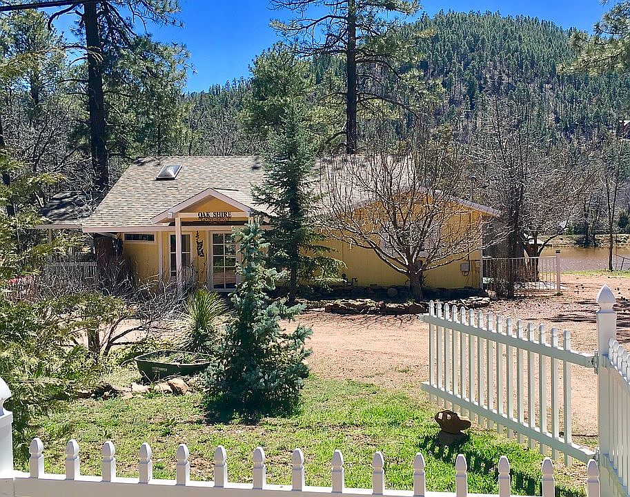 A serene cottage nestled among the oaks and pines with views of Strawberry Mountain. Fully renovated inside and out with new roof, HVAC system, and septic. Enclosed sunroom overlooking pond. Fully fenced property and outbuilding with bunkhouse potential. This property is a must see! Call (928) 300-2072 to schedule an appointment.