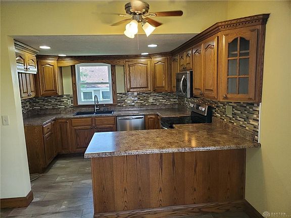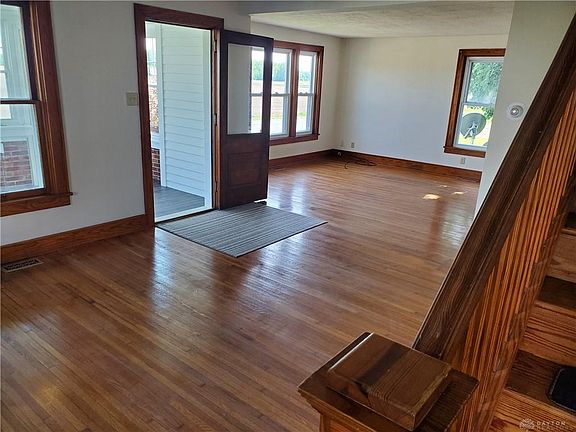 A beautiful Victorian 9225 W. Union Church Rd., Covington, Ohio home is a little mini farm with endless options for potential. The enclosed patio with new flooring gives you a great place to relax and take in the countryside views. The house has the original gorgeous hardwood floors and an open staircase which leads up to the two bedrooms and a playroom which overlook spacious farmland. The main level is open to a huge living room with one bedroom Located on this level. The home has many windows to give you plenty of natural light. The bathroom has ample cupboard space and towel racks to give the owner a feeling of luxury and comfort. The large kitchen has a new sink and faucet and tiled backsplash. There are many kitchen cupboards with three turn tables and pull out drawers. This is the type of kitchen you will want to make meals night after night. The basement offers beautiful vinyl planking which has five rooms down including a full bath. The bath has a full shower, new sink and vanity. The main area has a fireplace and a little loft, perfect for entertaining or just snuggling with a book. The basement has many rooms that could be used for gaming, office space or whatever you can imagine. A laundry area and sink are located by the softener. There is a pergola and fire pit with a privacy fence in the back of the property. The property has a large barn that can accommodate chickens, goats, horses and cattle with concrete floors. There is also a super cute shed that has been converted into a children's play house with lighting and electric. Also included with the 6 acres mini farm is a two car detached garage and large workshop with new windows. The home and barns roofing and electrical has been updated as well. Flowerbeds encircle the Victorian beauty that will capture your heart and never let it go. The home is also wheelchair accessible. Schedule your showing today before this beauty gets away.