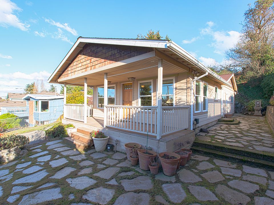 Impeccably remodeled 3 bed, 2.5 bath rambler perched on lot with territorial views. Gleaming hardwoods throughout, beautiful mill work, plantation blinds, and great layout. Kitchen upgraded with slab granite counters, ss appliances, and spacious hidden laundry. Master has ample closet space and tiled 5 piece bath with radiant flooring. Other 2 beds are separated with long Jack and Jill style bathroom. 3rd bedroom electrical permitted, not other work, 1350 sf. Tankless wtr, gas, move in ready!