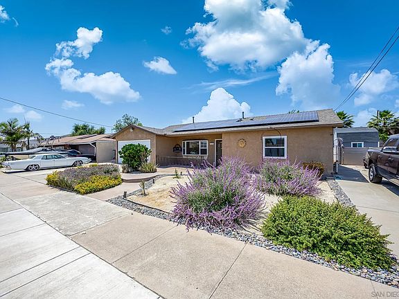 OWNED SOLAR! PLUS a whole house fan, central AC, remodeled bathroom, electric car charging station, in addition the sewer line has been relined. Do not miss all these upgrades! This is a beautifully refreshed 3 bed, 2 bath home nestled in one of Santee’s most desirable neighborhoods. This single-story gem features fresh paint throughout, creating a bright and inviting atmosphere from the moment you step inside. Situated on a generous lot, the property boasts a large backyard for additional living space or rental income. Front yard has drought tollerant landscape making maintenance a breeze. Enjoy the best of outdoor living with Santee Lakes and Mast Park just minutes away, offering trails, fishing, playgrounds, movies, concerts, and more. This home combines comfort, convenience, and potential, all in a quiet, established community with easy access to schools, shopping, parks, and freeways. Don’t miss your chance to own a move-in ready home with room to grow in the heart of Santee!