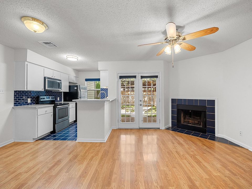 Welcome to this charming and updated 1-bedroom, 1-bathroom condo in the heart of North Austin! With 669 square feet of comfortable living space, this ground-level unit features an updated kitchen, a spacious living area, and a modern walk-in shower. Enjoy your morning coffee on the private back patio, which opens to a serene courtyard and provides direct access to your designated parking spot—no stairs or long walks required. Nestled in a quiet, well-maintained community with mature trees and lush landscaping, this condo offers both privacy and convenience. Just minutes from the Arboretum, Domain, and major tech employers, this is an ideal location for anyone seeking low-maintenance living with easy access to everything Austin has to offer.
