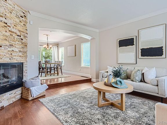 Don't miss this wonderfully maintained home. Mountain views from the Master bedroom & Loft area. Outside you will find newer paint, concrete tile roof, wrap-around covered front porch, Professionally landscaped yard with large deck, garden area, mature trees and fully fenced. Kitchen has granite countertops, stainless appliances, and travertine tile floors, a spacious dining area and living room with a gas fireplace for those snowy Colorado nights, Main floor laundry. Upstairs you will find a spacious primary suite with its own 5 piece bath and walk-in closet, very large loft area, two other bedrooms with their own full bath. Professionally finished basement with a beautiful 3/4 bath and open layout making it perfect to use it how you want to...rec area, study/office, family room, 4th bedroom.... Over 2,200 finished square feet. Very desirable neighborhood, and very close to Highlands Ranch Town Center.