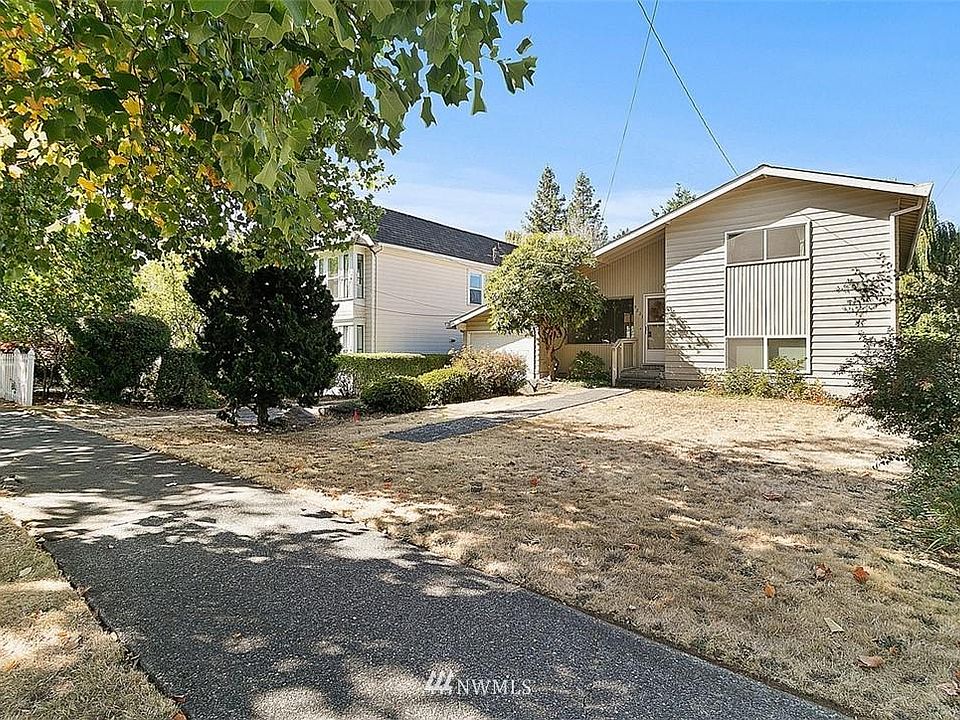 So much potential in this well laid out Mid Century Modern Tri-Level on two city lots. 3 bedrooms and full bath up. Main floor has spacious living room, kitchen and sun room. Downstairs offers a large family room, 3/4 bath additional bedroom and laundry room. Attached 1 car garage. Lots of built in storage. Level lot with two garden sheds, garden space and plenty of privacy. Within walking distance to the new light rail, easy access to I-5 and ammenities. Directly across from North Seattle College. Newer furnace and side sewer line has been replaced within the past few years. What a delightful home to call your own and update to your personal tastes.