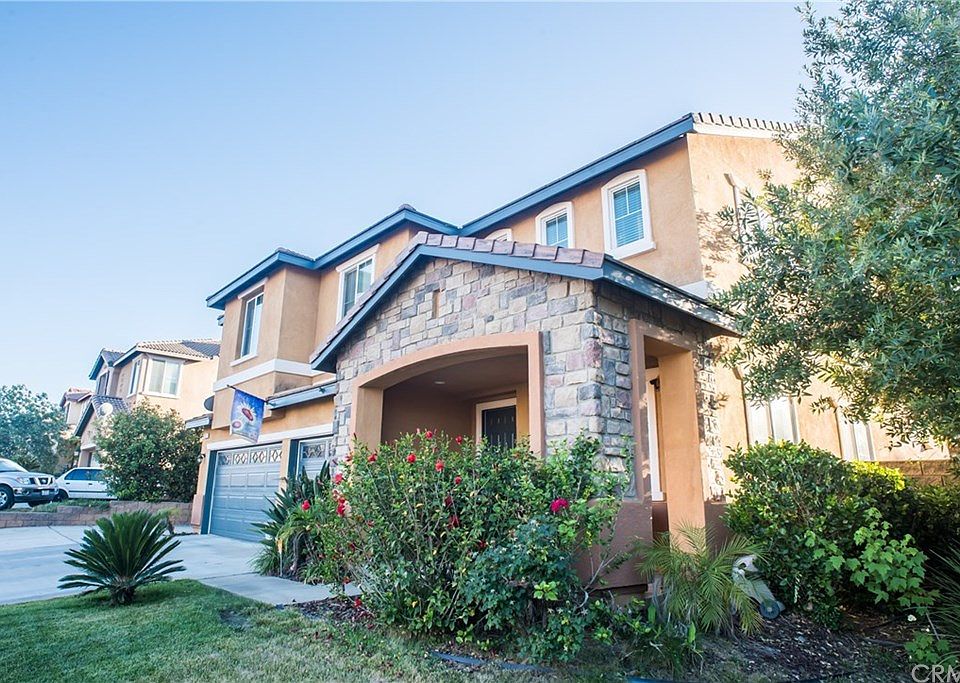 This beautiful and spacious four bedroom three bathroom property displays an excellent level of maintenance and an array of windows which allow the natural light to come in throughout the first and second floors. The first floor features a good size kitchen with granite counter tops, a built in stove, a built in oven and a walk in pantry. The living room, family room and laundry room and one full bathroom are also on the first floor. The master bedroom master bathroom, three more bedrooms, one more bathroom and an additional bonus room which looks like a loft are all located on the second floor. High ceilings feature crown molding and are wired for surround sound. In addition, this property features an insulated patio cover in the backyard with electricity, fans and lights for outdoor parties or simple quiet dinners. A must see.