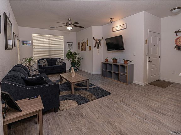 Ground floor unit with no stairs to climb! This condo is barely 2 years old. It has an open concept floor plan with open kitchen, dining, living room with a walk out patio area. 9' ceilings make a difference. Garage included is located on Wilde Ave. Quick access to E-470, shopping and Costco Warehouse. The community also has a clubhouse, 24/7 access to fitness center, outdoor swimming pool, hot tub, volleyball court, park and trail.