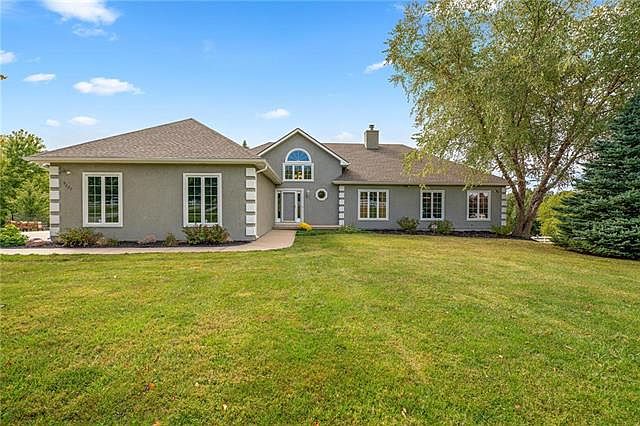 Stunning reverse 1.5 story home on +/- 3.3Ac that backs to the tree line! Soaring ceilings & floor to ceiling fireplace in the living room. Spacious kitchen boasts cust. cabinets, hard surface counters, island, walk-in pantry, brkfst bar & dining w/ deck access. Enormous master bedroom w/ an ensuite office, see-through fireplace, deck access, his & hers sinks, jetted tub, skylights, huge tile shower & more! Finished walkout basement w/ family rm, rec rm, 2 beds & full bath! Newly stained, oversized deck!
