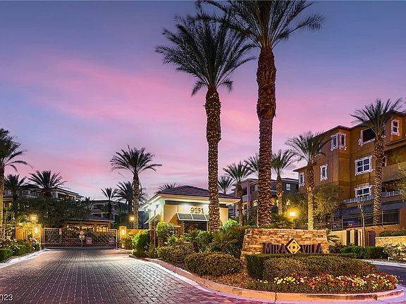 Stunning 3rd-floor condo in the gated Summerlin Mira Villa community. BEST VIEWS IN ENTIRE COMMUNITY - Strip, Golf Course, and Mountain views! Move in ready with high quality finishes throughout. Stone and hardwood floors, chef's kitchen with custom cabinets, granite countertops, stainless steel designer appliances, and abundant counter space. The primary suite has a sitting or desk area, large custom closet and designer bath surrounds with both a separate tub in addition to a large luxury shower. An additional primary en-suite bedroom with custom closets and designer bath finishes completes the unit. Your fob controlled elevator from the oversized 2 car garage takes you right up to the unit foyer. Easy access to the luxurious Tivoli Village for shopping, dining, and outdoor farmers market. Just minutes from down town Summerlin, world class golf, Summerlin Hospital, and much more. This guard gated community features a fitness center, pools, and a world class, carefree lifestyle .