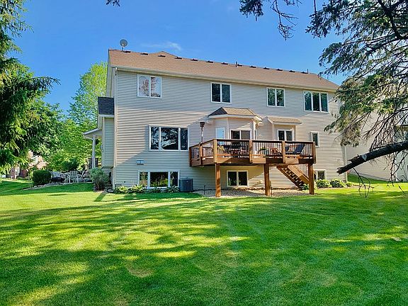 Stunning former model in HOA-free Oak Hills rests in a large cul-da-sac with incredible curb appeal and amazing location just atop the Minnesota River bluff from Hi-way 169. This home features 5 bedrooms (4 up), 4 baths, and a huge family room with a stone surrounded fireplace. The dark hardwood floors on the main level bring you from the garage past the oversized laundry and into the kitchen where granite, ceramic backsplash, and stainless appliances are found. The fully finished basement features a bedroom, bath, wet bar, and large area for the kids to play while the 100-inch projection theater entertains the whole family. The outdoors is wonderfully landscaped and extensively lighted and includes a large composite deck wrapped in ruff-side cedar with mature evergreen trees as your view, a rare side patio area for campfires or coffee. The epoxied garage is huge with ample space for 3 cars, hobbies, and is extra-deep for your toys (boat!).