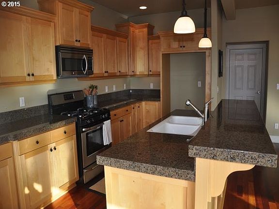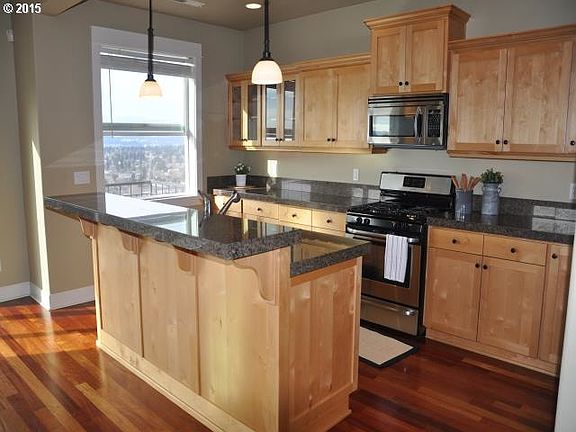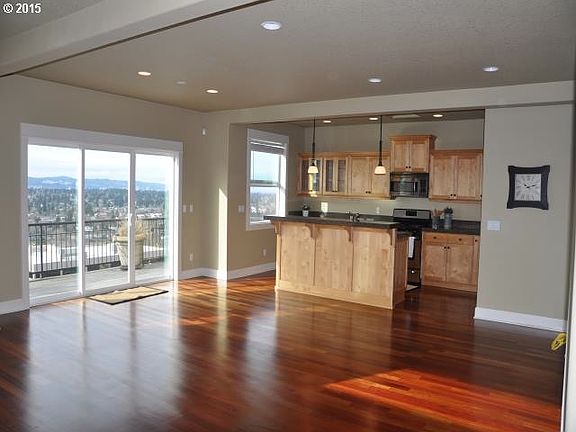 Complete 180 degree view of the city and valley not only from the balcony deck but also from FR, kit and 2 bdrs. Beautiful HW flrs in FR and kit. with stainless steel appliances and granite counter tops. High ceilings on lower floor and vaulted in master bedroom upstairs. 2 bdrs downstairs with bonus room and large laundry. Blinds throughout and air conditioning. Text Arleen @ 503-734-6378 for viewing. Tenant responsible for all utilities