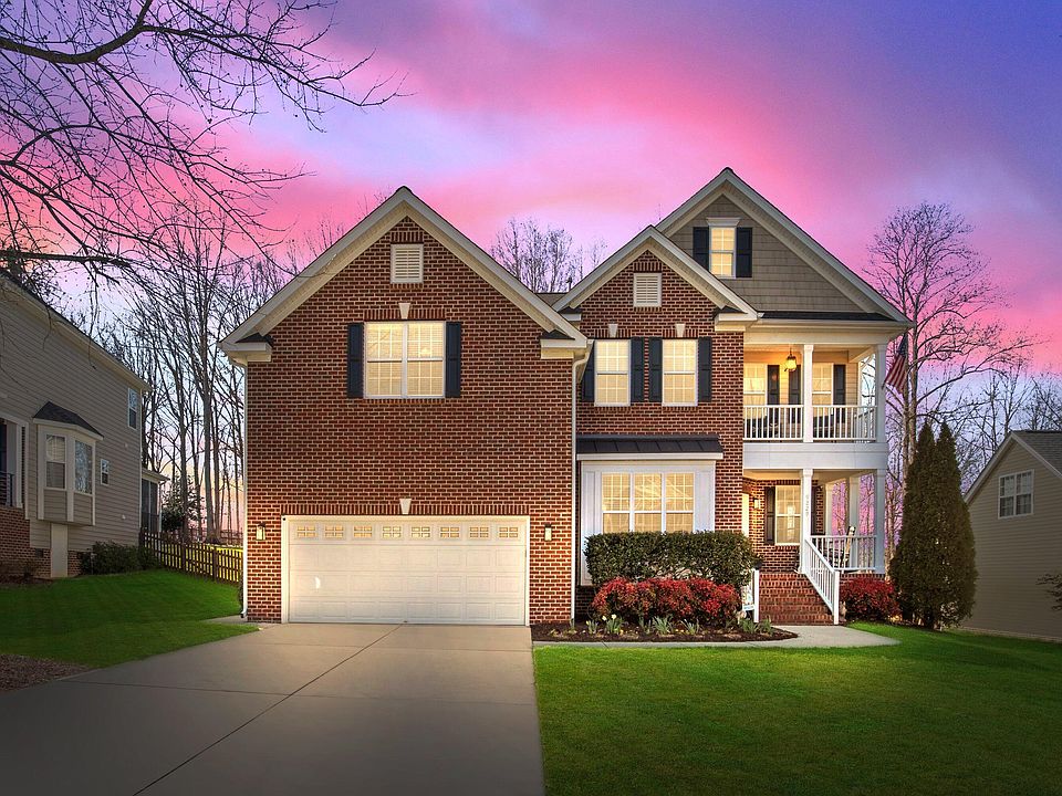 Welcome home to this immaculately maintained, one-owner home in the established Dansforth community. Curb appeal from the moment you arrive. This brick home is highlighted with a double-decker porch for relaxing! Beautiful hardwoods run through the main floor, in excellent condition. Grand foyer opens to an office and additional true dining room/flex space. The kitchen offers granite counters, SS appliances and an island leading to an eat-in kitchen space and large family room with gas log fireplace. The large primary suite offers a walk in closet and ensuite with dual sinks, garden tub, shower and another walk-in closet. Upstairs features 3 additional bedrooms and a gigantic bonus room for gaming or movie night. The outdoor space features a covered porch, concrete patio and spacious yard with firepit, tons of trees and privacy! This community features a pool, clubhouse and walking trails that connect to the expansive greenway system. Only 10 minutes to downtown Wake Forest, close to shopping, easy access to US1 or 401 for quick commute to Raleigh.