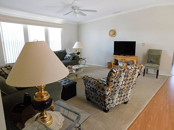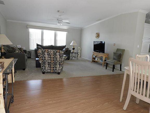 Spacious 2005 PH with 3 bedrooms, plus a den, 2 baths, and 1,736 square feet is located on a nice quiet street with an oversized carport. The home features a split floor plan with the guest bedrooms and bath located at the front of the home. Carpet in the bedrooms, newer laminate flooring in the living room, dining room and den and tile flooring in the kitchen and bathrooms. The home has large windows that allow lots of natural light to flow through the bright and cheery home. The home has tape and textured walls, crown molding, and rope kitchen cabinets. The kitchen has a new refrigerator and dishwasher and plenty of cabinet storage, countertop space and a portable island. Off the kitchen is a den area that could also also be used as an eat-in kitchen. The dining room, living room and den have a surplus of windows with cornice window treatments which are the crowning element adding texture, depth and a pop of color. The master bedroom is located near the rear of the home and has a large walk-in closet. The master bath has a garden tub, double vanities, a tiled shower and a chair height toilet. Located off the master bath is a laundry area with a washer and dryer. The screened, rear facing lanai has carpeting and is in a private location which is the perfect spot to relax and unwind. The home is offered partially furnished and has an interior view. The lot lease is $796.00, and the home is on leased land in a resort-style, 55+ community on the North side of Lakeland FL. Amenities include two pools, two hot tubs, Fitness center, Full-time staff fitness instructor, Tennis courts, Bocce ball courts, Pickle Ball, Horseshoes, Clubhouse, 24 Hour Manned guarded gate, lawn mowing, trash pickup and a portion of the property taxes.