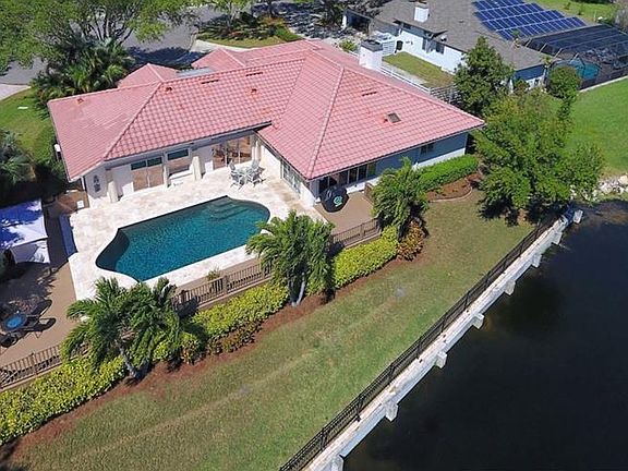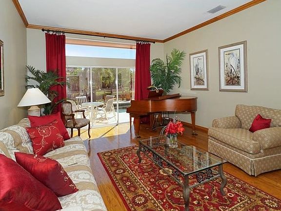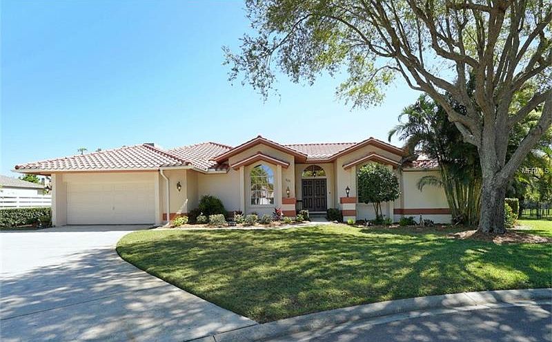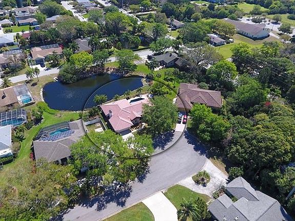 This home has the WOW factor! You will be impressed from the minute you drive up to this lovely property, beautifully situated on a private cul-de-sac with mature trees. Upon entering the front door it is evident that the owners have loved and cared for their home. Hardwood floors throughout with the exception of the master bedroom and baths, wood plantation shutters on almost every window including sliding glass doors in bedroom, crown molding, large kitchen with breakfast bar, breakfast nook, double ovens, stainless steel appliances, granite counters, and stone backsplash plus custom wood cabinets together with solid wood panel doors throughout. Both of the 2 bathrooms have been updated. In addition, before entering the master there is a closet that is totally plumbed for a ½ bath. Directly off the kitchen is a Florida room that is tiled with a wet bar and makes an ideal entertainment area with direct access to the pool area. The deep saltwater pool with pebble tech finish is surrounded with travertine tile and wood decking with a fabulous water view. There is also a gazebo with hot tub which conveys and the back yard is totally fenced. Large laundry room with shelving plus a garage that has an abundance of newer cabinets. Newer well for irrigation, hurricane shutters for all windows, and hook-up for a generator. A/C is a 5 ton Trane installed in 2011 plus new duct work. Tile roof installed in 2004 and totally secured with stainless steel fasteners. Truly a home that you will love to call yours!