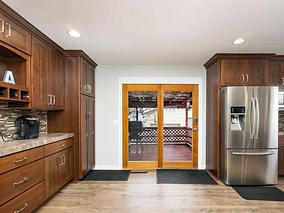Impressive updates in this four bedroom/2bath home. Custom kitchen by Rimrock Cabinetry in 2015. You will love the feel of the open kitchen. Looks out into the living and dining room, or walk out onto the covered deck. Perfect for entertaining. Huge 24 x 36 garage, room for vehicles and large shop area. Beautiful, very private fenced back yard.