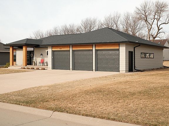 Check out this NEW SIOUX CENTER listing! Great location nestled into a neighborhood near Children's Park, Kinsey Elementary, Sioux Center Health and the walking path that provides access through the community. Tremendous curb appeal and design with cedar siding accents and porch beams! This custom built home built by Beukelman Construction in 2016, this functional floor plan offers so many desirable qualities and features! 4 bedrooms, 3 baths total! Main floor laundry room with great storage space! Spacious custom kitchen cabinetry with ample storage, functional design and lots of natural daylight. Basement is fully finished with 2 bedrooms, 1 full bathroom + ample space for entertaining guests and a large storage room. Oversized 3+ car garage, insulated and heated with a shop/office area that is super convenient for an exercise space, home business, storage or a pet palace. Outdoor space has newer landscaping, patio and firepit and established shade trees. Quality finishes, immaculate condition, this home is welcoming and inviting!