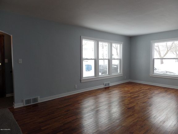 Completely updated 2 bedroom, 1 bathroom home in the city of Belding. Updates include new roof, siding and windows on the exterior-along with a totally remodeled full bath, re-finished hardwood floors and new paint throughout the interior. The second story provides enough space for a second family room or an additional non-conforming bedroom. The back yard features a large fenced-in area and a private deck. Enjoy all the conveniences of natural gas heating, central air, city water & city sewer, sidewalks, paved streets here! All appliances remain with the home, make your appointment today!