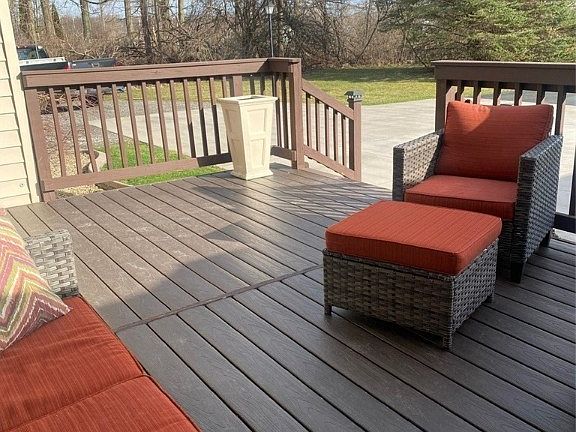 This 1756 sq ft Ranch has a great open layout w updates throughout from front to back. Enter from the Large Front deck w Trex boards done in '22- a great space to relax. There are 2 bedrooms on either side of the main living area. You won't miss any of the action when friends are over- the Open Concept has a breakfast bar w tons of storage cabinets, WBFP, & Fr. doors to the yard. Updates within the last 8 years include a new roof, kitchen, windows, pergo and carpeting throughout, beveled glass entry door, garage doors, fully fenced back yard, low maintenance landscaping, side doors, concrete driveway apron, & HWT. All appliances are included. The 15x10 First floor laundry/ Mudroom has a Pergo floor, lg. workspace countertop w cupboards, and a wall of included storage cabinets. The heated garage w storage or office has new Apollo floor coating done in '21 (mounted TV is negotiable) and is currently being used as additional entertaining space. Seller requests that All Offers be submitted by Saturday March 16th by 3:00 pm