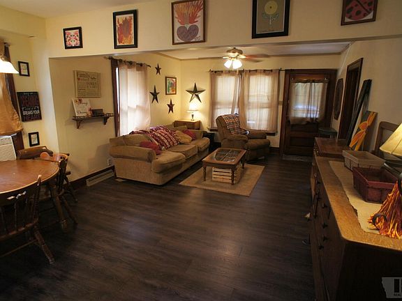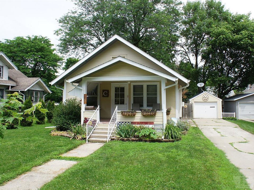 This 2 bedroom bungalow style home is move in ready and has had some nice updates. New laminate flooring in the living room, and some original hardwood floors, split barn door on the bathroom and recently the outside has been repainted. Possibility of a 3rd bedroom in the attic or even in the NW corner room in the basement. (no egress) There is a large area in the basement that would make a great family room. Also, downstairs you will find the laundry, 3/4 bath and lots of storage. Great backyard with privacy fee on the west, fire pit area and patio. Shed in backyard will stay. Other items that are included are range, refrigerator, microwave, 2 window AC units, table and 4 chairs in the basement. Great starter home or investment property!