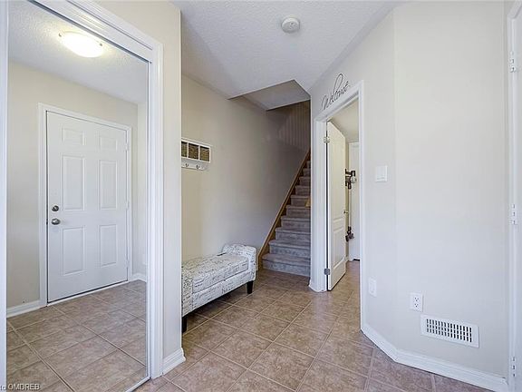 Welcome to 923 Burrows Gate in Milton's desirable Coates Neighbourhood. This Mattamy built, Freehold townhome is the Ashfield Model offering 1051sqft. The front porch welcomes you to the large entry foyer with garage access, double door closet, laundry room and expansive storage space. Heading upstairs, the main level offers a powder room and open concept floor plan that is flooded with natural light - the perfect space for entertaining. Walk from the kitchen to the sunny, West facing balcony with gas line and BBQ (included). On the upper level you will find two spacious bedrooms and a 4 piece bathroom. The master is the perfect retreat, with walk-in closet and large windows. Move in ready! Walk to many amenities including groceries, Starbucks, Schools, Parks and close to highways, biking trails and much more.
