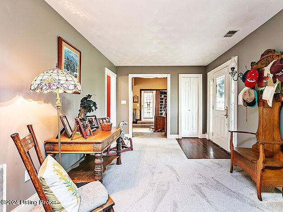 Beautiful, retired, working horse farm. This property offers 4000sq.ft. of comfortable country living. 3 bedrooms 3.5 baths. Formal dining room and chef's kitchen with an abundance of cabinetry and a large island. The breakfast room offers a fireplace and lots of natural sunlight. The sunken living room boasts a floor to ceiling wood burning fireplace and open stairwell. Off the living room is a sunroom that gives a great view of the pond and barns. Upstairs you will find an impressive en suite with a jetted tub and stand-alone shower. 2 BR 1BA and office area complete the area. Venture out to the heated stable that features 20 stalls, 7 of which are birthing stalls. Office area a 60 X 118 ft indoor arena. Aprox 20,000 sq.ft. under roof. Rocks around bell do not remain.