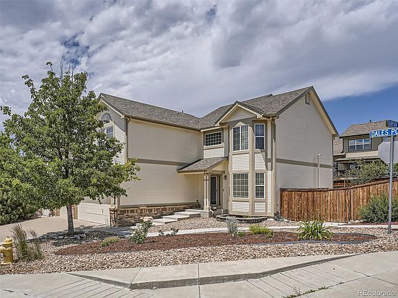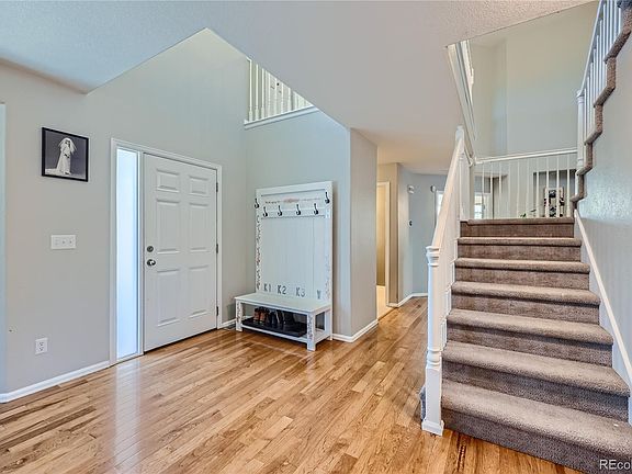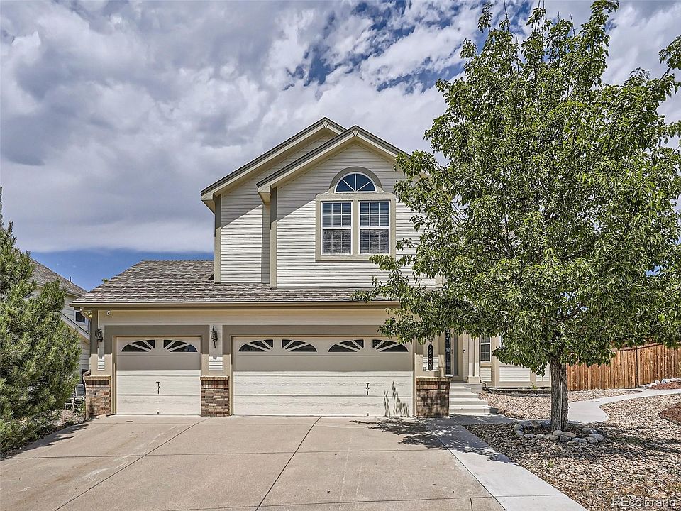 Welcome to this beautiful home nestled in the sought after Hazen Moore neighborhood. With its stunning upgrades and prime location, this property offers an exceptional living experience. Boasting 3/4" engineered hickory floors, plush carpeting throughout and brand new ext paint. This home exudes comfort and function. Step inside and be captivated by the gourmet kitchen, featuring SS appliances, Corian countertops, maple cabinets, a pantry, eating space, and seamless flow into the great room. The great room is a perfect space for relaxation, complete with a cozy gas fireplace and convenient backyard access, creating an ideal setting for indoor/outdoor entertaining. The main floor also presents a living room that seamlessly connects to the elegant formal dining room. Completing the main level is a double door executive office, providing a private and professional space to work or study. Retreat to the upper level where you will find the spacious master suite, a true private oasis. The master suite features a walk-in closet, a 5-piece primary bath, and a vanity area, offering a tranquil escape from the daily routine. The top floor encompasses 3 generously sized beds, each with ample closet space. Convenience is at your fingertips with an upstairs laundry rm and two linen closets. The basement boasts versatile spaces that can serve as guest beds, flex rooms for various purposes, a workout area, large storage area & a rec room w/sink. Completing this incredible prop is an attached and oversized 3-car garage, providing ample storage and direct backyard access. The park-like backyard is a haven for relaxation and enjoyment, featuring a wrap-around patio with new concrete, garden areas, a designated hammock area, & even a firepit. Don't miss out on the easy access to all that Castle Rock has to offer, inc. trails, shopping & dining options, proximity to schools and community ball parks, and quick access to the highway.