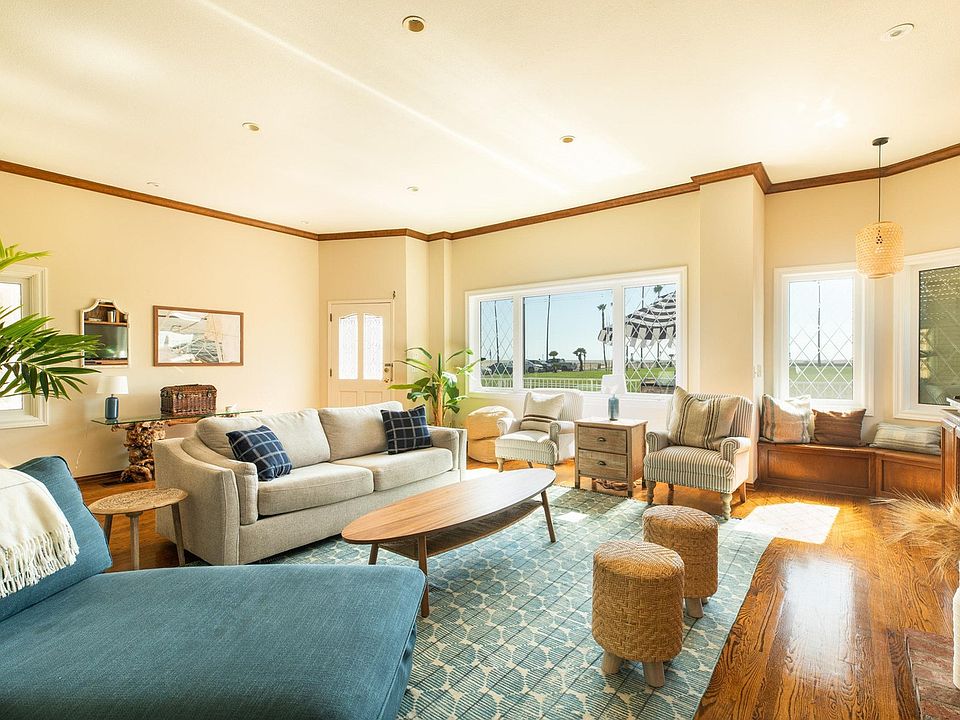 Welcome to Sea Glass! Step inside this beautiful villa and admire the pastel walls, beachy wicker furnishings, and plush seating that create an upbeat and relaxing ambiance for you to enjoy. Perfectly situated on the beach, you can walk to the sand or look out on the sparkling water from the private balcony. A charming and colorful kitchen invites you to enjoy a home-cooked meal while the villa's ideal location allows you to easily check out the nearby restaurant scene. The villa features a charming and colorful kitchen, perfect for preparing home-cooked meals. The plush seating and beachy wicker furnishings in the living area create a relaxing ambiance, while the private balcony offers stunning views of the sparkling water. This home comes with a pack n' play travel crib and a high chair available. The driveway can accommodate 5 cars, but the garage is not for parking. This coastal city has the largest recreational harbor on the West Coast and is known for its amazing beaches, parks, restaurants, and outdoor shopping centers. The living is easy here and often includes bike rides along the boardwalk and watching pros surf some of the biggest swells in Southern California at The Wedge. Take the ferry to Balboa Island for the best seafood in the area and to ride the historic Ferris wheel at everyone's favorite old-school amusement park. Nearby activities include Balboa Peninsula, Fashion Island Shopping, Balboa Surf and Style for renting bikes and paddleboards, The Market for trying the Reuben Sandwich, Balboa Fun Park, Corona Del Mar Beach, Whale Watching, Newport Pier, Gondola Adventures, and Crystal Cove Park. There is active construction taking place next door, which will continue for the foreseeable future. To compensate for any inconvenience, a 10% discount on future bookings is offered. This home does not have AC. This home accepts a maximum of 2 pets, which must be approved in advance and are subject to an additional fee of $150 per pet. If undisclosed pets are brought into the home without approval, there is a fine of $500 per pet. There is a 2-night minimum stay for this home. Bedroom 4 is only accessible through bedroom 2 and bedroom 5 is only accessible through bedroom 3. This home has a considerable amount of stairs throughout. Occupancy includes an additional two beyond bed count. Trifold floor mattresses and additional linens can be provided upon request. This is a smoke-free property. Violation of the no-smoking policy will result in a $300 smoking fee and liability for any fire or property damage costs. Occupancy limits and quiet hours (9pm-8am) are strictly enforced. No speakers or sound systems are provided. Violation of any noise ordinances will be subject to fines that can reach up to $10,000 per violation. Events or parties are not allowed without prior written approval and an additional fee. Any unauthorized parties or events will be shut down and a fine will be assessed. IDs will be requested for verification after booking. We report and prosecute all credit card fraud.
