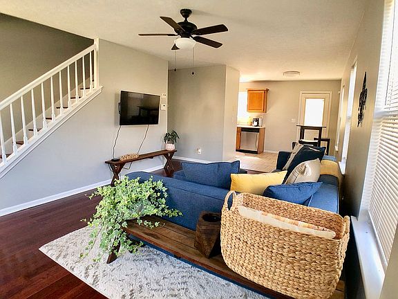 Nice two story short term rental close to downtown. Real hardwood floor and handy kitchen with good size back porch in fully fenced backyard. This home offers master bedroom on first floor and two nice sized additional bedrooms and full bath on second floor. Well maintained with amenities inside the house. Back porch and fully fenced back yard can be a good relaxing place for you after busy day.