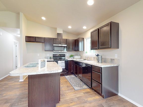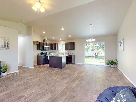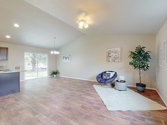 Why wait when your home is here?! This 3 bedroom, 2 bath home features an open concept, good sized kitchen island, vinyl wood looking flooring in all living areas (for easy cleanup), carpet in the bedrooms, nice walk in closet in the primary bedroom and much more! Outside there is a nice back patio with a great sized back yard, lots of space for parking cars and toys off street, and an attached finished 2 car garage! Schedule your showing today!