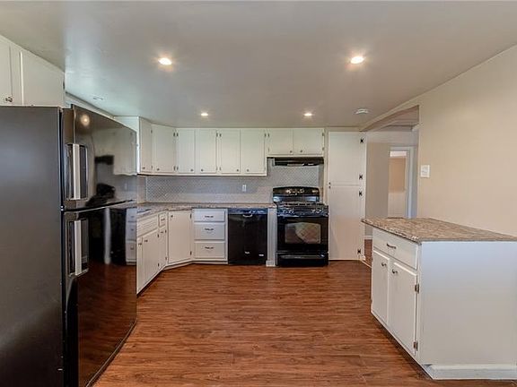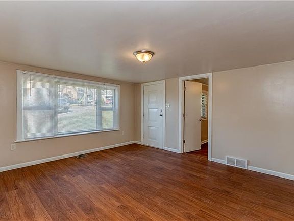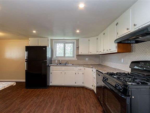 Super clean, sweet and ready for a new owner! Large living room and eat-in kitchen with newer black appliances, and backsplash, Two bedrooms and an updated bathroom, all new flooring, paint and blinds. Newer roof, furnace and duct work, bathroom... new meter and gas line. There is a spacious additional bedroom in the lower level, plenty of storage and washer and dryer that stay with the house. Nice yard, off street parking for at least four cars and a front and side covered porches!