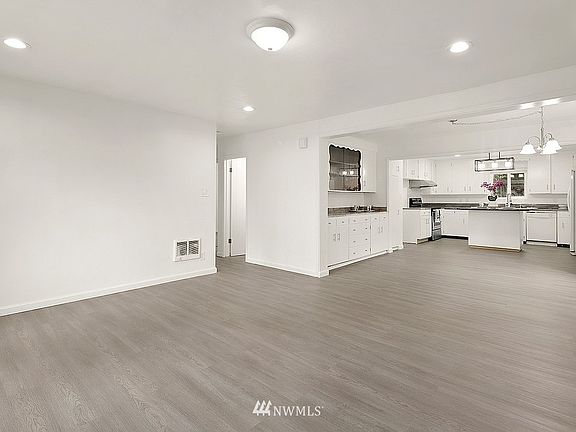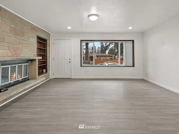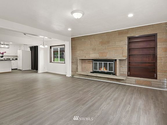 Charming home in the Renton Highlands! House features 4 bedrooms & 2 full baths. Large living room with cozy fireplace, Hardwood floors throughout including in all four bedrooms. Spacious kitchen island, decorative lighting, Newer water tank and newer appliances. Dining room has built in cabinets. Slider door to the covered patio. Master bedroom has a master bathroom. Double paned windows, electric wall unit heating. Window accents, new base trim, door trims, new interior and exterior paints. Fully fenced. Back of the home has gated entry for privacy. Utility room with washer and dryer. Parking in the front and back of the house. Great location, close to schools and all amenities. Easy commute to I-405. Minutes to Renton Landing, downtown.