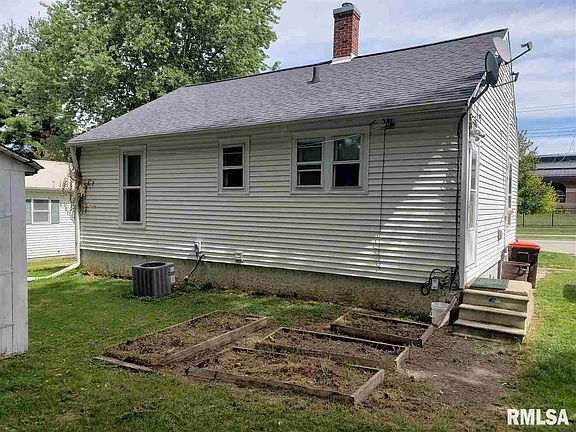 PRICE REDUCED!!! This cute 2 bed, 1 bath has beautiful hardwood floors and original natural trim and doors, the master has brand new carpet. It has a deep lot with a large storage shed and garden area. There is a high end security system, newer water heater and central air and furnace, , new sump pump, roof is only 9 yrs old, and the windows have been updated! Metal beams re-enforcing the foundation in the basement to make this a super solid home, ready to move in! Appliances stay, vinyl siding is maintenance free, and the home is located close to I-72! Call for a showing!
