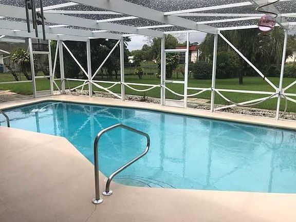 On navigatable canal. Screened front porch entrance to Open design. Foyer entry to living, dining rm. Open kitchen and family rm. Hurricane impact glass windows and doors. Extra large master suite with walk in closet. Large renovated master bath. TV camera security monitor system. Smoke detectors. Reinforced screened cage with pool and covered entertainment area patio for outdoor living. Large back yard. Tropically landscaped front yard. 2 car garage. No HOA! Minutes to park, schools and shopiing. Excellent starter home!