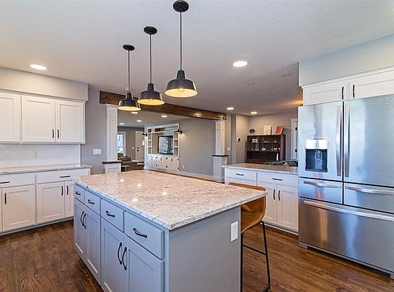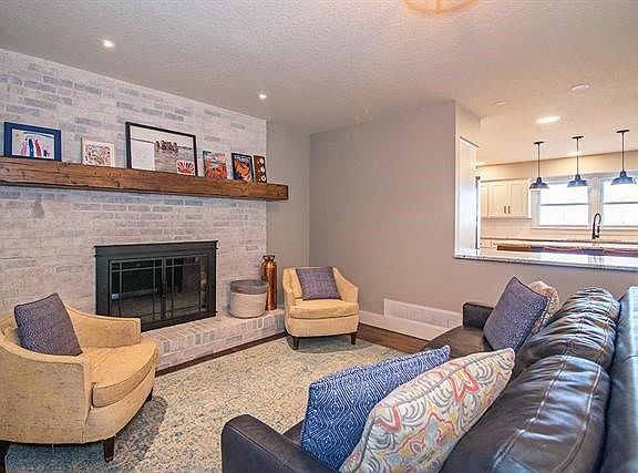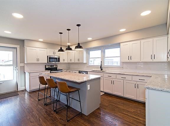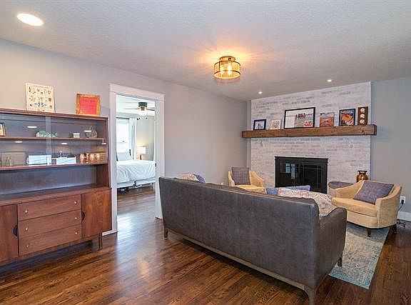 Open space with beautiful woodwork, refinished hardwood floors and beautiful built ins. Granite countertops in the kitchen and oversized laundry room. Wood burning fireplace in the hearth room just off the kitchen. Basement is finished enough for the current homeowner uses with superb stone walls and painted floor. Across from the Hillcrest elementary school playground with shopping nearby. One of the best neighborhoods in all of Lawrence, blocks from KU.