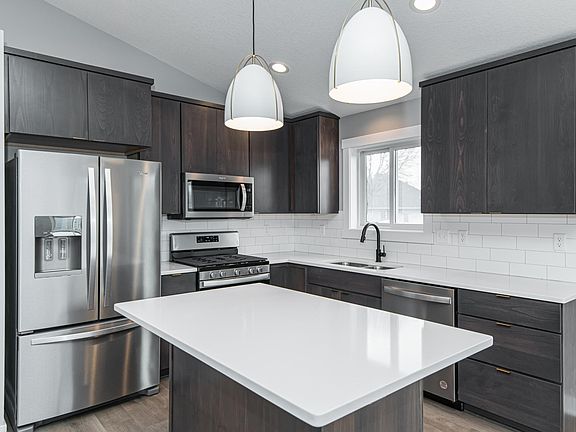 This 5 bedroom, 3 bath walk-out rambler impresses from start to finish. With modern LP siding, and gorgeous stone accenting the durable vinyl siding, you'll love the curb appeal! Step inside the entryway (with main floor laundry on left) and you're greeted by a large living room that connects the open floor plan to the dining room and kitchen. The luxury vinyl planking provides a durable and practical base to a stunning main floor. Stainless appliances give way to overlay cabinetry, subway tile backsplash, and a gorgeous quartz countertop (you HAVE to see this in person). The primary bedroom features a walk-in closet and it's private bath has a double vanity and immaculate step-in shower. All five bedrooms have quality carpeting and the primary bath has a gorgeous overlay vanity and a tub/shower combo. The finished, walk-out basement provides tons of living space and no necessary future projects. Move in to this gorgeous home as quickly as you'd like and never look back!